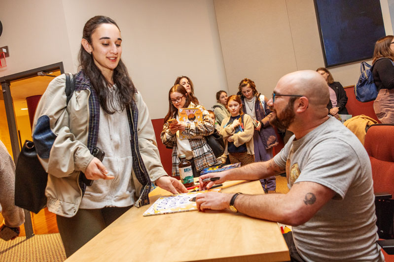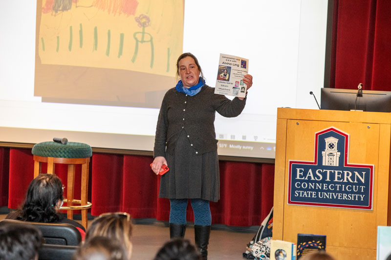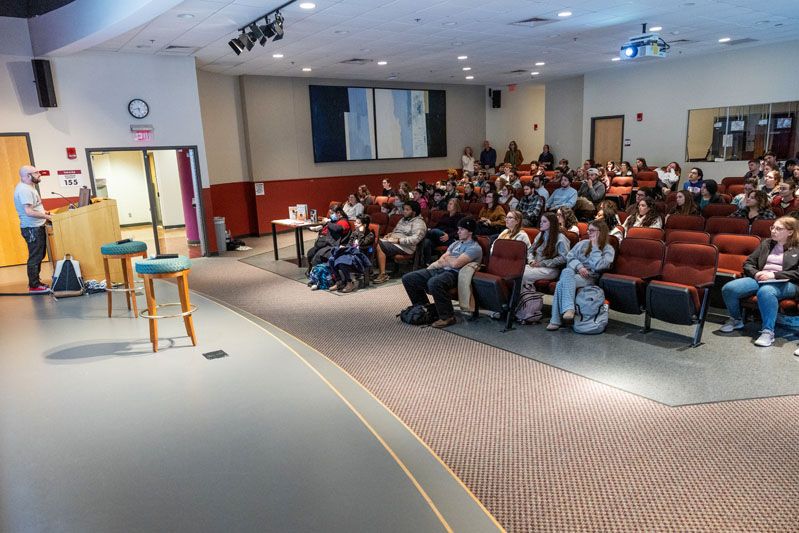 That message resonated with students in attendance. “As an aspiring educator, I’m thinking about getting authors to speak in my future classroom,” said Isabella Pucci, a senior studying elementary education.