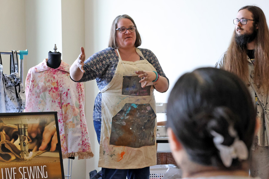 In addition to riveting talks, participants also showcased their creativity through a sneak-peek performance of the Department of Communication, Film, and Theatre (CFT)’s “Women’s House of Detention” in the Fine Arts Amphitheater, and in a live sewing event led by CFT Professor Anya Sokolovskaya.