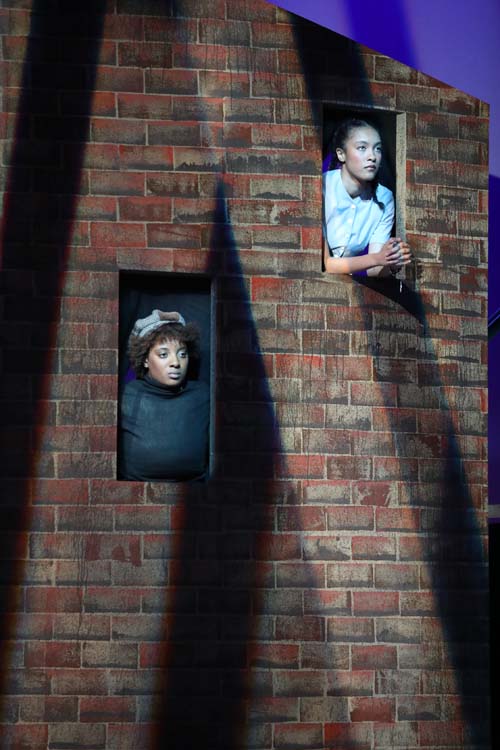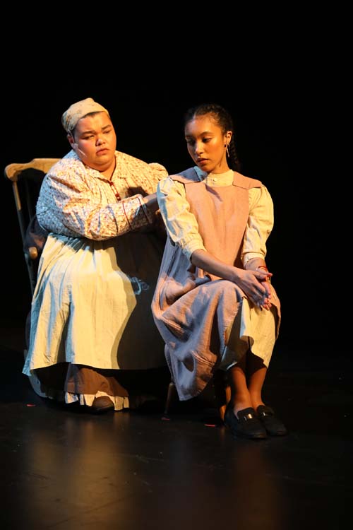 Angela David and Mabel Hampton were brought to life by Xsyanni Jackson ‘25. “It's tough playing a person in the carceral system, especially since the characters we’re playing are real people,” they said. “I just want to pay proper attention and respect to their stories.”