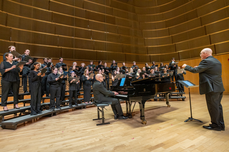 For his final performance, Belles called upon Eastern choral alumni for a special send-off. “I wanted it to be a journey to the past and made it an alumni concert,” he said. “We had nearly 60 people come from as far back as (the Class of) 2012. … The finishing touch was to bring in all of these former students.”