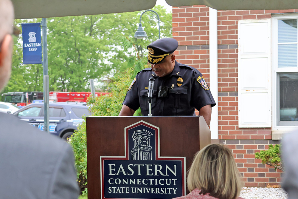 Eastern Connecticut State University’s Department of Public Safety recognized first responders who have lost their lives in the line of duty in a ceremony on May 15 on the Public Safety lawn.