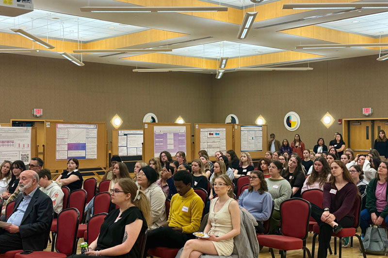 The event served as the culminating project for students of “Research Methods II,” who were tasked with conducting an original research study. The event hosted more than 50 students and poster presentations, which nearly filled the BTR.