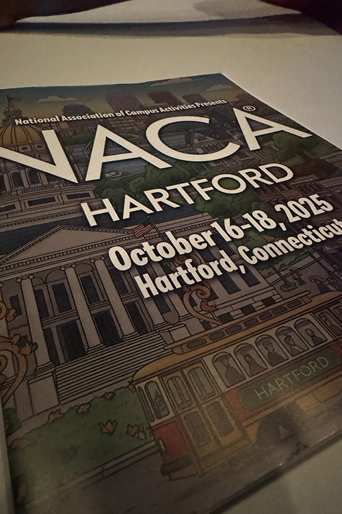 Director of New Student and Family Programs Alyssa Duffy served as conference team chair. “The weekend was full of energy, heart, and NACA magic,” said Duffy. “Hartford attendees answered the call to show up and give the experience their all, take advantage of every opportunity, support acts, learn from others, and grow.”