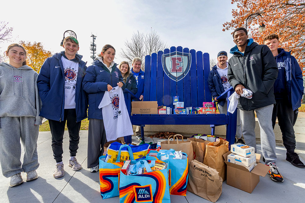 Business administration Professor Charlie Chatterton organized the event in collaboration with volunteers from Eastern’s Student Athletic Advisory Committee and Center for Community Engagement to collect donations of non-perishable foods to benefit Eastern’s on-campus food pantry, Shawn’s Cupboard, as well as the Covenant Soup Kitchen in Willimantic.