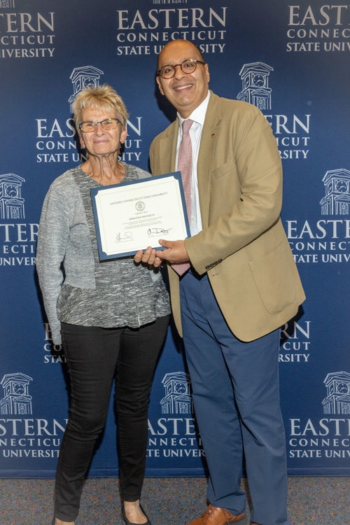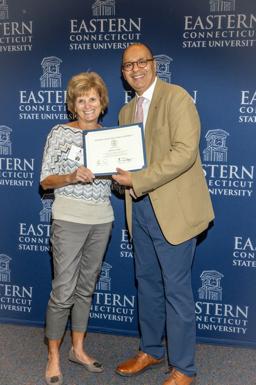 In 1975, the Vietnam War came to an end, classics “Jaws” and “The Rocky Horror Picture Show” made their cinematic debut, Microsoft was founded, and the Class of 1975 graduated from Eastern Connecticut State College. More than 30 of those graduates returned to campus — now renamed a university — on Oct. 17 to receive their Golden Diplomas and reconnect with classmates during their 50-year “jubilee” reunion.