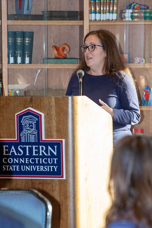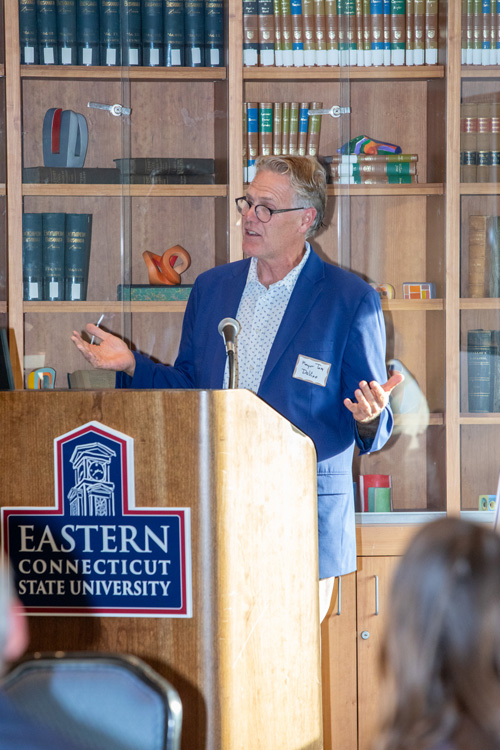 Chris McNaboe, chair of the Willimantic Downtown Neighborhood Association and CEO of Horizons, a children’s camp in Windham, emphasized the importance of Eastern students sharing their skills in the local community.