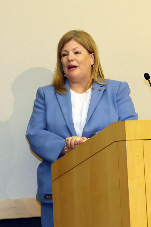 New University Senate President Kristen Morgan praised her predecessor, William Lugo, and reaffirmed the Senate’s role in shared governance: “Democracy is stronger than ever here at Eastern.”