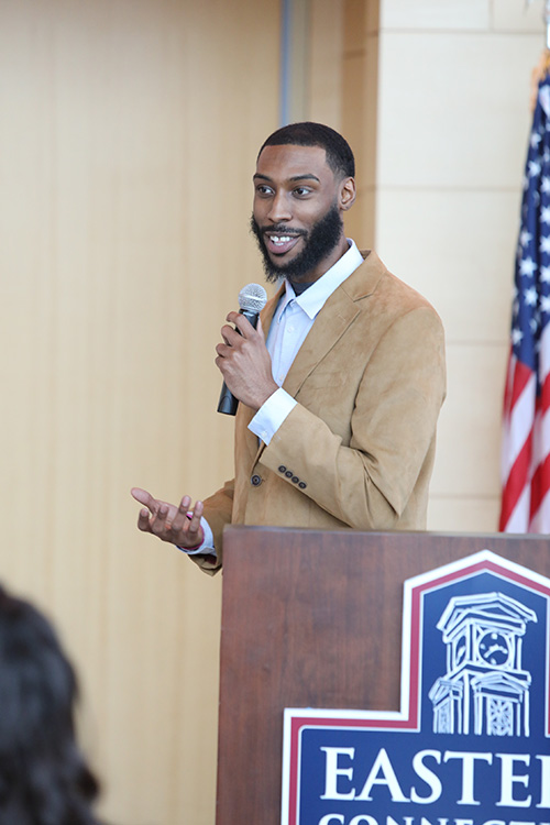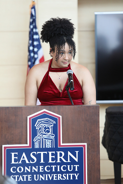 Eastern Connecticut State University's annual Equity and Social Justice Awards recognized three student activists for their commitment to civil rights and advocacy for marginalized groups. The ceremony took place on Feb. 20 in the Fine Arts Instructional Center's Susan Sukman McCray Foyer.