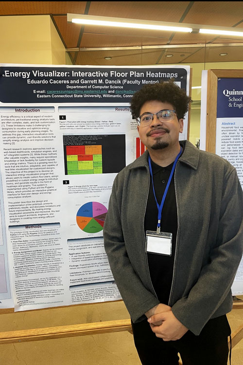 Eduardo Caceres-Zuniga went in a different direction with his project, titled “Interactive Floor Plan Visualization for Energy Consumption Analysis.” The project aimed to help foster sustainable building design through an interactive visualization tool.