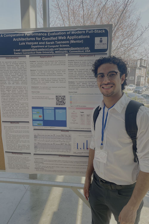 Stephen Canavan’s poster was titled “Evaluating ChatGPT's Ability to Answer First-Order Logic-Based Questions.” Canavan’s project arose from an increasing need to understand the accuracy of AI chatbots, which are rising in popularity.