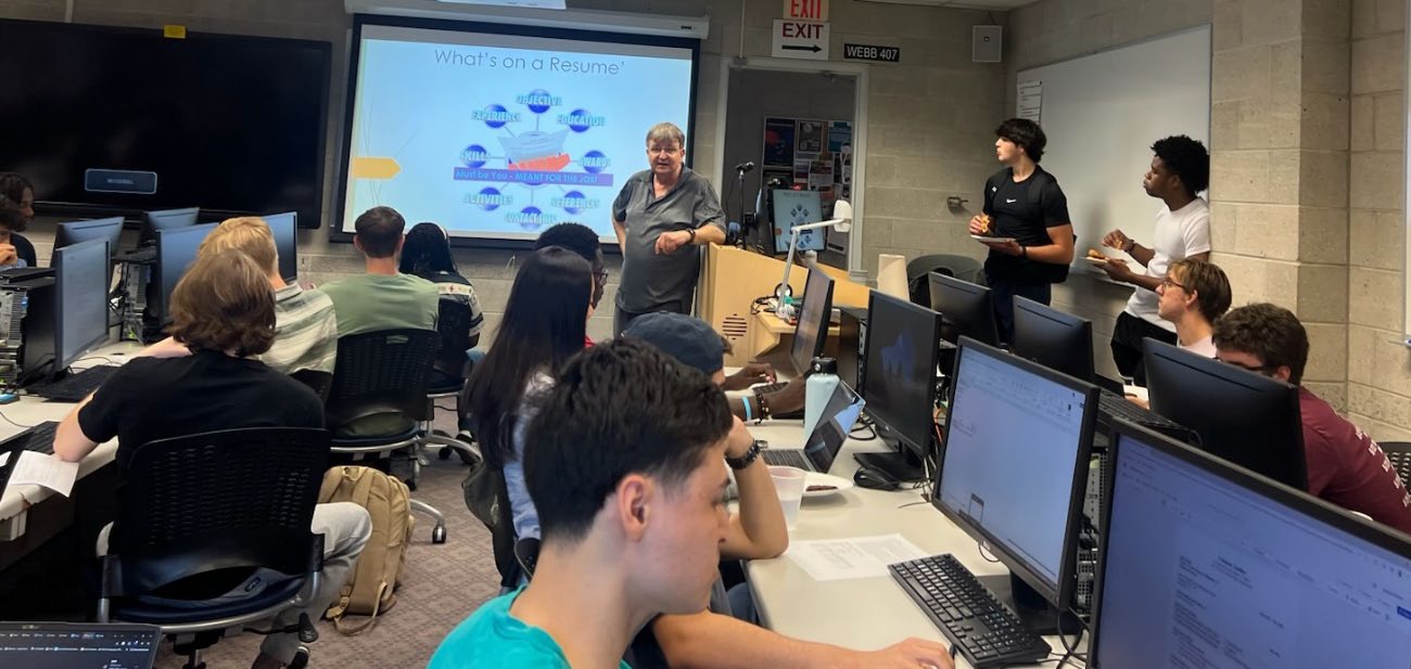 Dr. Citurs led the workshop by presenting to a crowd of over 50 students with some even waiting outside the door! This maintains the growth of the club over the last couple years after COVID. Dr. Citurs has an extensive history in the field of Biz-Tech with numerous impressive connections to multiple major companies home-based out of Connecticut through alumni and others, who have all attended to the fact that the overall format from Biz-Tech resumes from Eastern students are excellent. As the name suggests, this was only the preparation workshop, as the writing workshop will be the following week, September 17th from 5:30 PM to 7:30 PM where alumni from numerous of the companies will come to Eastern to provide feedback on students’ resumes and suggest improvements from the hiring perspective! Dr. Citurs also repeated the presentations to those who could not make it, at 4:00 PM.