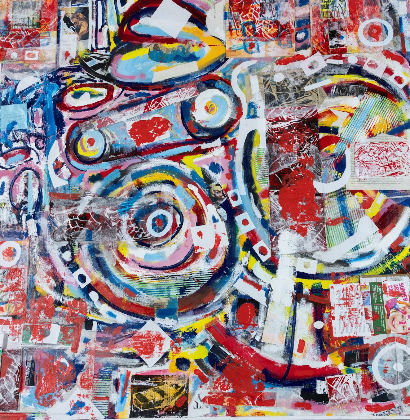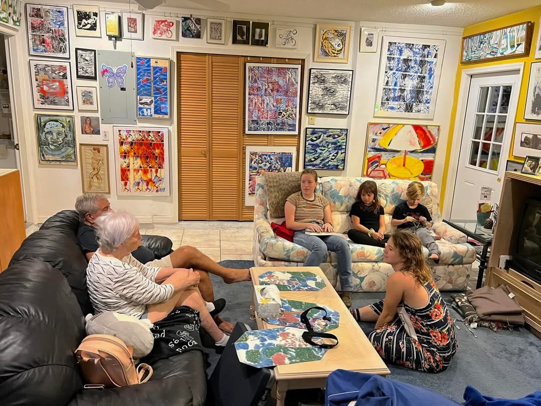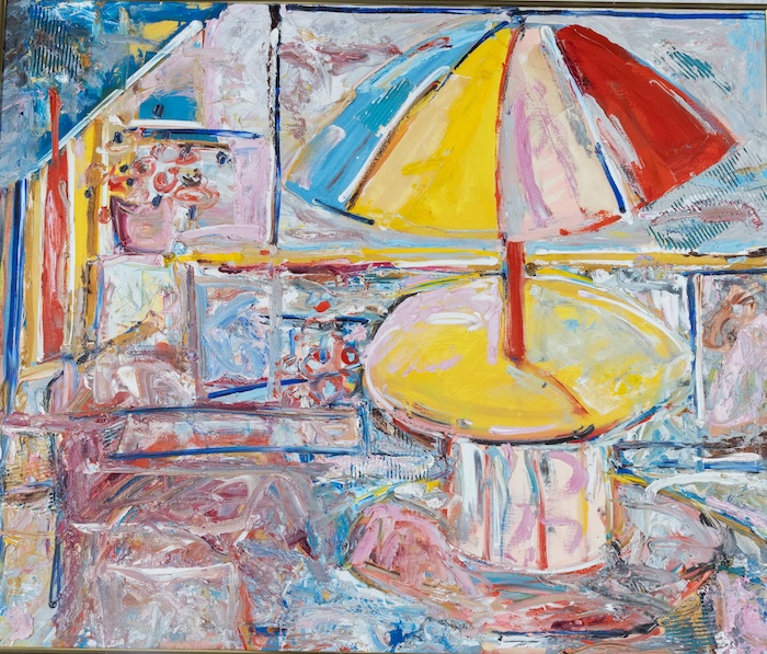 Tom Gargiulo: The Art Father and Connecticut Modernist showcases 41 mixed media and oil paintings created by Tom Gargiulo. As an abstract painter, he worked with other media, making prints and collage pieces. His prolific work spans the decades from 1960 to 2022, with over 200 pieces in his collection. Before his works found their way into public parks, galleries, and hearts across the community, Gargiulo began creating art in the most familiar and personal of spaces—his Connecticut home basement and his garage that he turned into a studio in Florida. These humble, makeshift studios became places of quiet devotion, where ideas were shaped in solitude and materials came alive through his hands. Whether in a garage or a gallery, his work carries the same spirit: expressive, modernistic, and reflective of the times. When visiting my grandfather, Tom Gargiulo, I would see glimpses of rooms in his house, covered in artwork. His house was alive with color and texture, its walls covered in layers of canvases, sketches, tools, and unfinished ideas waiting to take shape. Growing up, I was drawn to his use of vibrant colors, and I viewed these works through a childlike lens. His collection includes deeply personal aspects, including a series of boat prints and scenes of the aftermath of Hurricane Katrina, paintings, prints of humanity in masks during COVID-19, and pieces reflecting the late 1970s teacher protest in the Bridgeport school system.