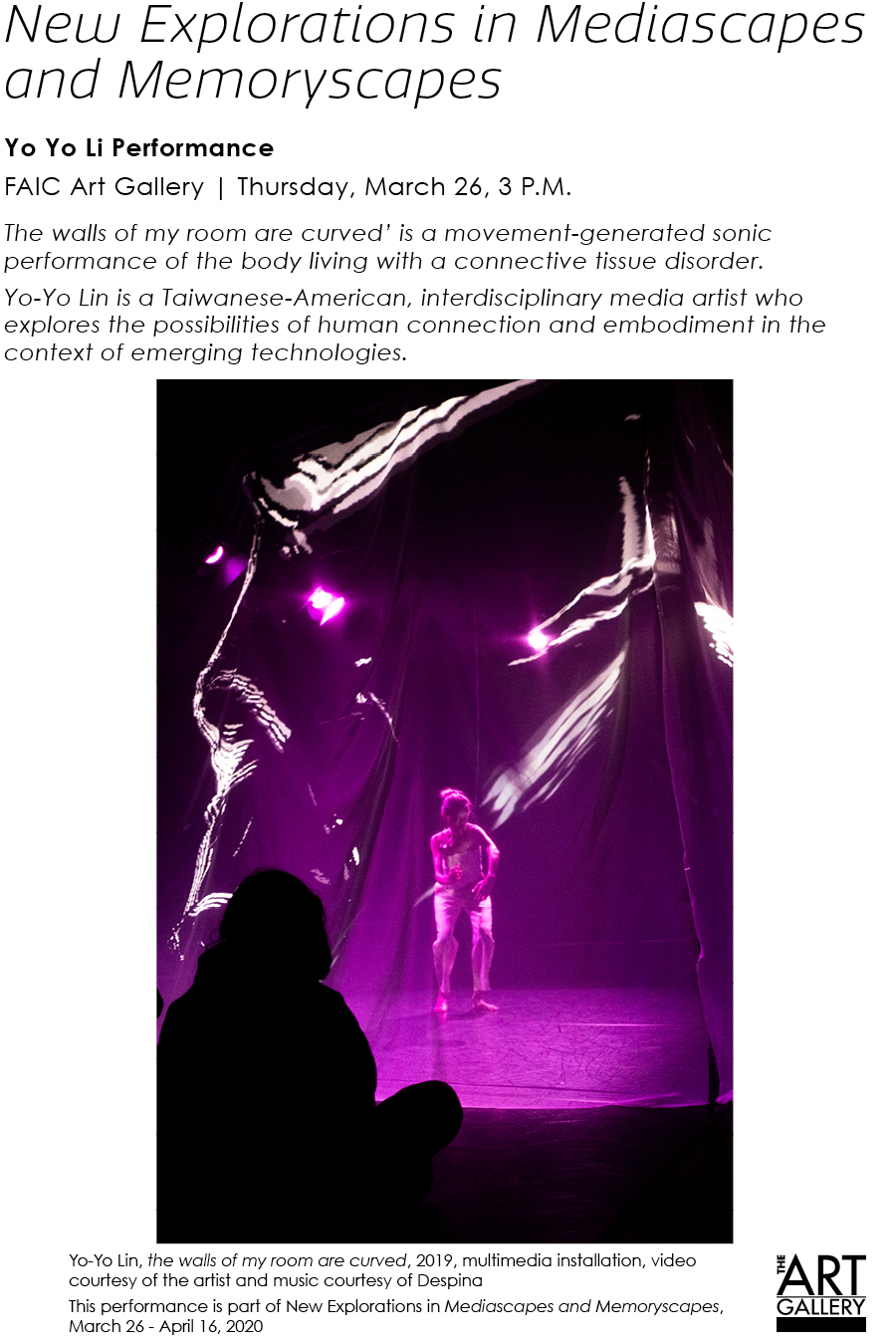 Thursday, March 26th, Artist talk at 3 PM, followed by opening reception of Media exhibition 4-6PM