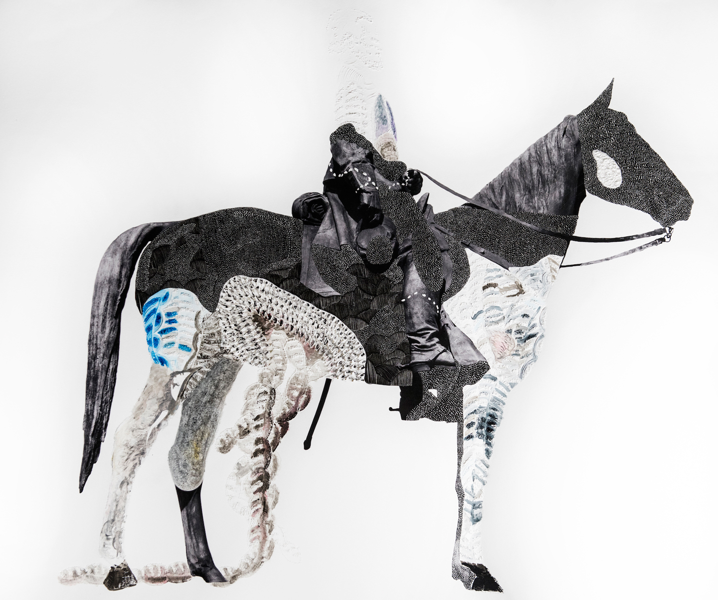 Nate Lewis, Probing the Land IV, 2020, Hand-sculpted inkjet print, ink, graphite, frottage, 44h x 62w in, Private collection, Image courtesy of the artist and Fridman Gallery