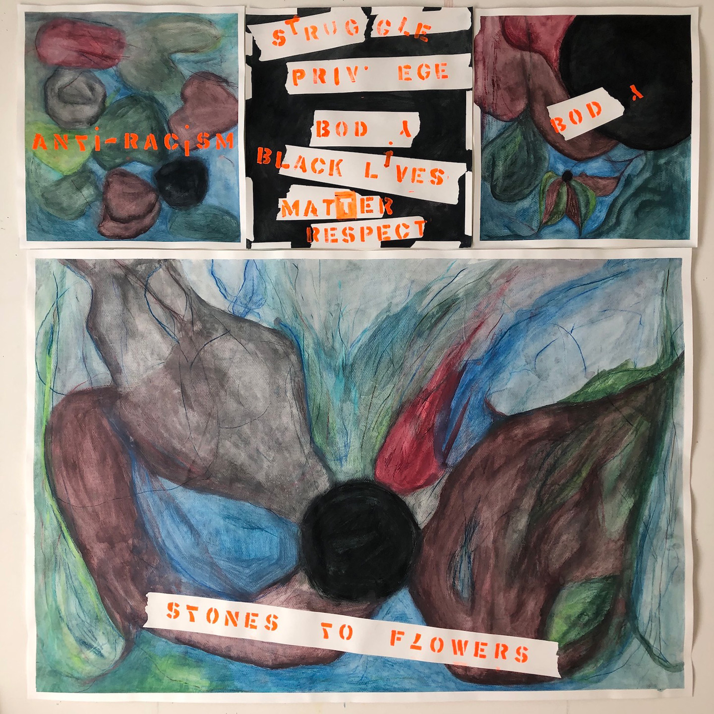Nicole Royer, Stones To Flowers, 2020, watercolour, gouache and pencil on paper, 46 x 46 in, image courtesy of the artist