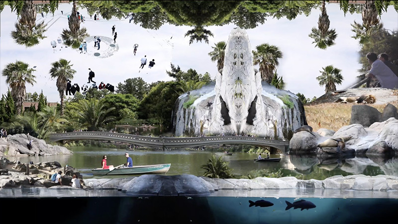 “City Collage is a short-looped video collage series. I juxtaposed various city scenes to make utopic landscapes. Each work uses over 15-20 videos as its sources. Video is a time-based medium and contains movement. Therefore, when I combine videos to create a united landscape, It requires a precise connection of all moving elements. In City Collage 2, for instance, I could make a boat floats on the Lake for a long time by joining several videos seamlessly. The precision of connecting moving images is the key to my magical utopia. Using editing technic as a tool, I accomplish my imagination realizing into the digital world.” Hyemi Kim, 2021.