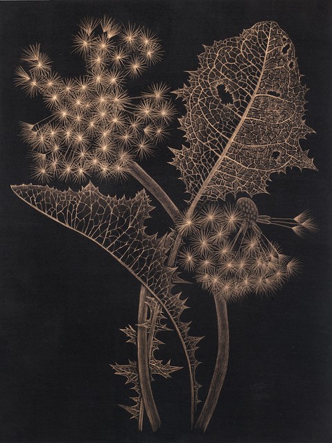 “Close examination through the act of drawing has always been a method of committing what I see to memory in a way that regular observation alone cannot. Precision allows me to slow down and spend time with the subject matter; my sense of time shifts while drawing in order to capture the detail accurately. I find that my breathing and movement quiet down to adjust to this effort in a way that allows me to focus and tune out the outside world while working. Including detail and precision in my drawings invites the viewer to step close to share in the experience of seeing the subject at hand. I am interested in the history of using plants as ornament in the decorative arts, thinking about delicate filigree designs in traditional decorative and fine arts and the play on the tension between the idealization of natural patterns with the beauty of their actual irregularity, highlighting the detail in all of its imperfection and beauty.”