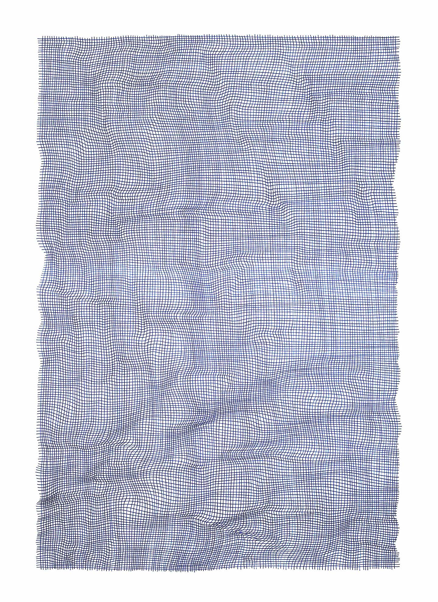 The Warp and Weft drawings that came out of this practice are an ongoing series. I start by drawing a freehand vertical line, then a second vertical line that is close to the first and follows any of the natural wobble or contours that may be in the first line. I repeat this until I get to the other side of the page, then do the same in the other direction making horizonal lines. These works trace the first line, whatever tension is in my hand that day, and the rest of the lines are all in relation to that first line.