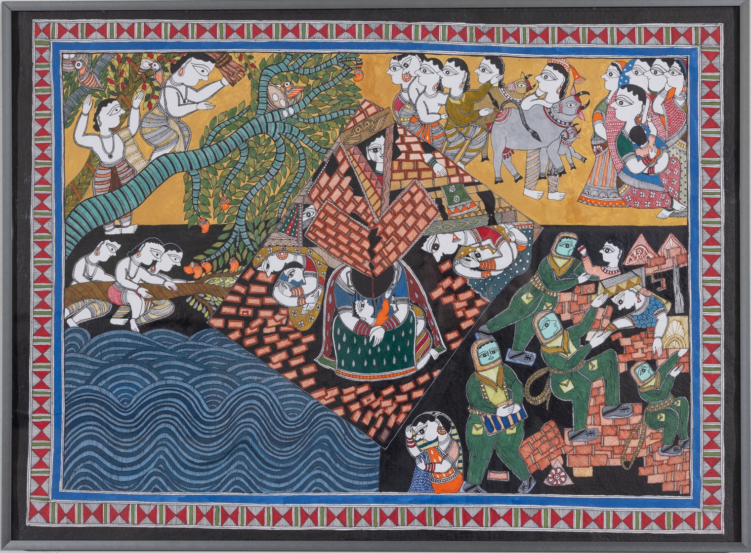 "The history of Madhubani Painting begins in ancient times. The paintings discovered on mud walls after the 1934 earthquake were merely a glimpse of a centuries-old painting tradition ingrained in the ethos of Mithila. It was a coincidence that the devastating earthquake brought this tradition to the world's attention, and during the famine of the 1970s, this 'art' gradually found its way into the art market.
