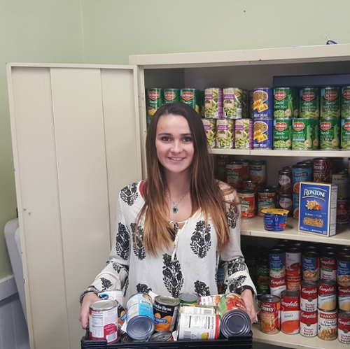 Food insecurity does not only impact our community, but also our campus. 1 in 5 college students in Connecticut face some type of food insecurity and we use our food pantry, Shawn's Cupboard, to help them. Our pantry is a student-led free and confidential source of not just food but hygiene products and recipes as well as seasonal products (hats, backpacks, notebooks, etc.) as donated. Thanks to donations from our campus and our community partners (including our churches!) and partnerships with Stop & Shop and CT FoodShare, we are able to stock our shelves with the fuel our students need to succeed.