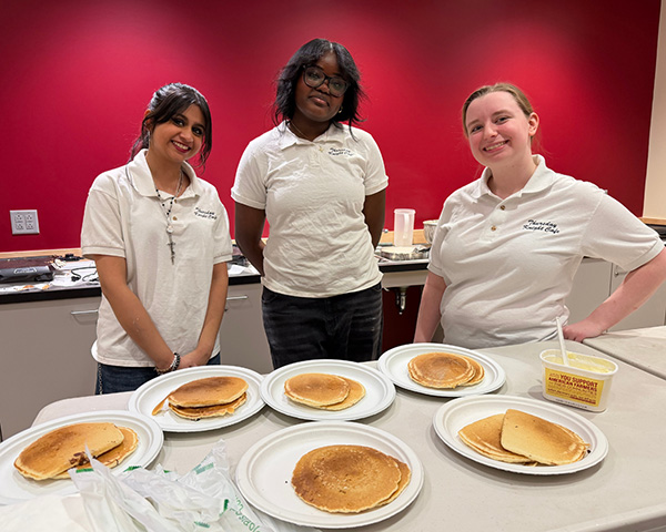 Grab your free pancakes every Thursday night in the Student Center Cafe from 8:30pm - 10pm with chocolate chips on the first Thursday of the month! Enjoy themed nights, live music, karaoke, Kahoot, and time with your friends with a sweet treat!