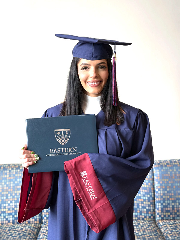 Commencement is a joyous and dignified occasion, celebrating the academic achievements of our graduates. All students participating in the ceremony must wear an approved cap and gown, and only official Eastern honor cords may be worn as part of the academic regalia.