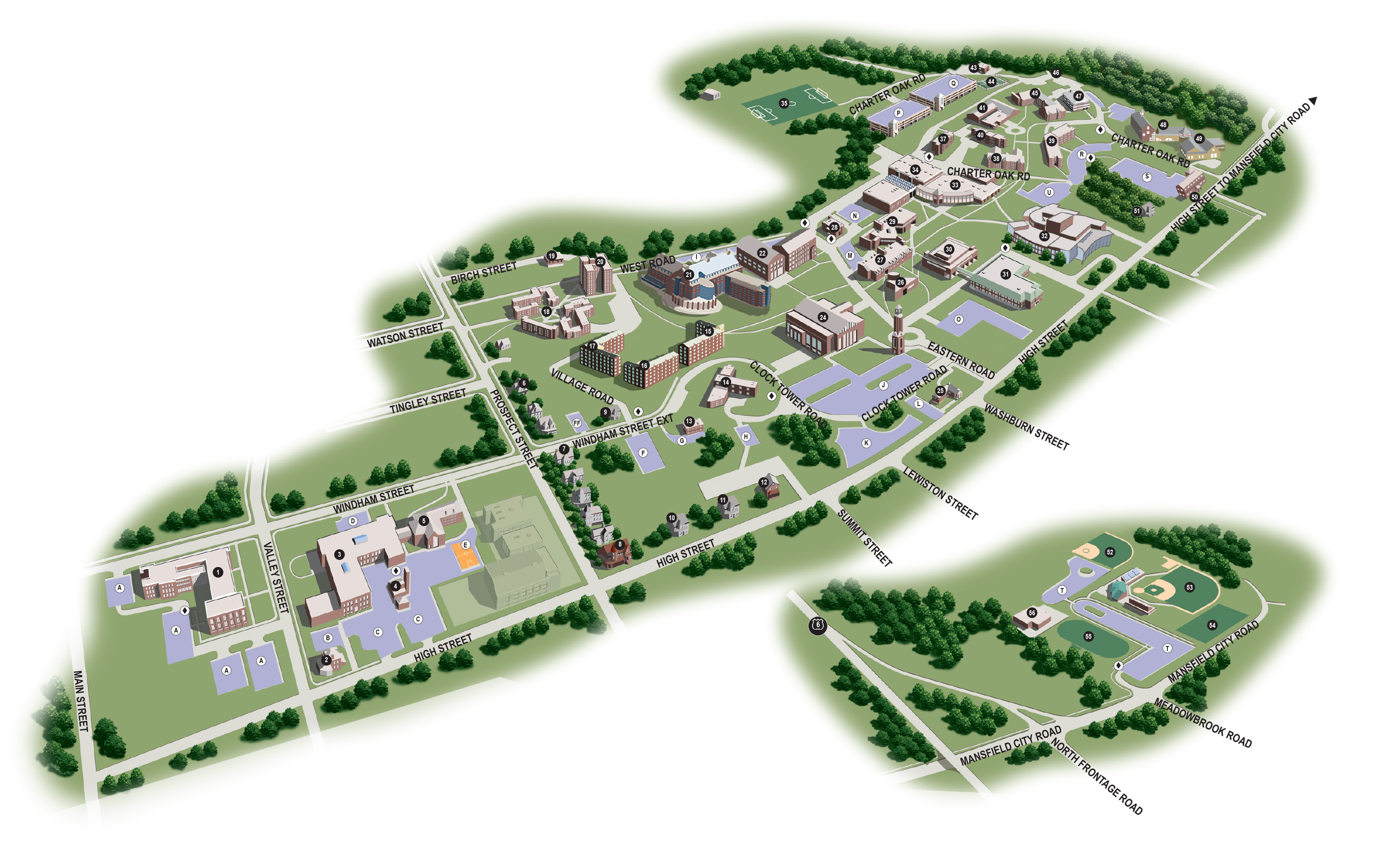 C - Commuter | R - Resident | F - Faculty | S - Staff | V - Visitor Access Entrances Emergency Phone Shuttle Stops