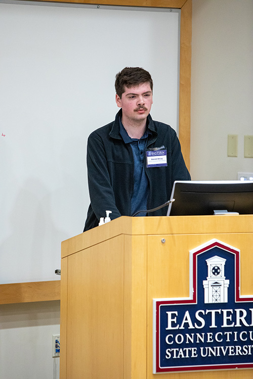 History students at Eastern Connecticut State University and visiting students from other Connecticut State Universities (CSUs) presented research at the CSU Making History Conference on March 28 in the Student Center. The conference was broken into sessions that covered legacies of oppression, domestic/international crises, documenting/reinterpreting the past, and other topics.