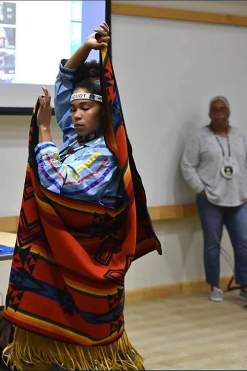 Gambrell has also given back to Eastern. On several occasions, she has performed traditional dances and spoken in favor of Native visibility on campus and beyond.