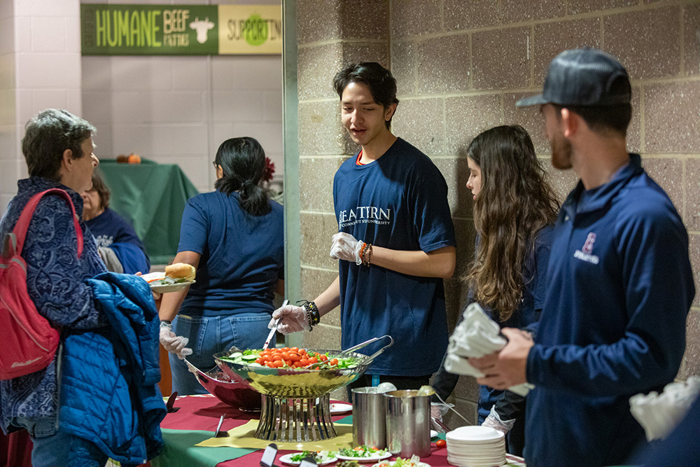 More than 75 students, faculty, and staff served at the event, along with volunteers from Horizons, a developmental disabilities program in South Windham. Eastern provided transportation via university shuttle buses from Ashton Towers, Father Honan Terrace, and Covenant Soup Kitchen.