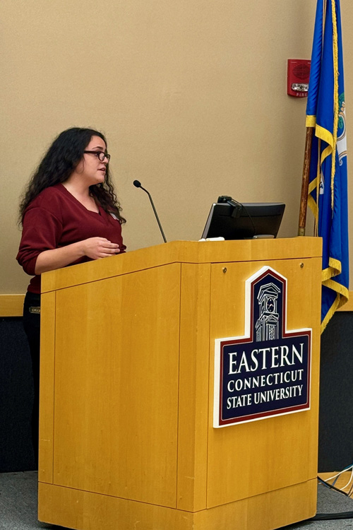 Sarah Cruz Velasquez presented her research on the relationships between attachment styles, mate retention, conflict resolution, and relationship satisfaction.