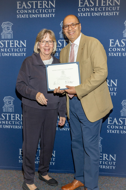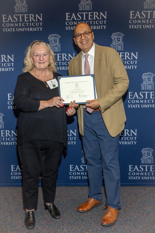 In 1975, the Vietnam War came to an end, classics “Jaws” and “The Rocky Horror Picture Show” made their cinematic debut, Microsoft was founded, and the Class of 1975 graduated from Eastern Connecticut State College. More than 30 of those graduates returned to campus — now renamed a university — on Oct. 17 to receive their Golden Diplomas and reconnect with classmates during their 50-year “jubilee” reunion.