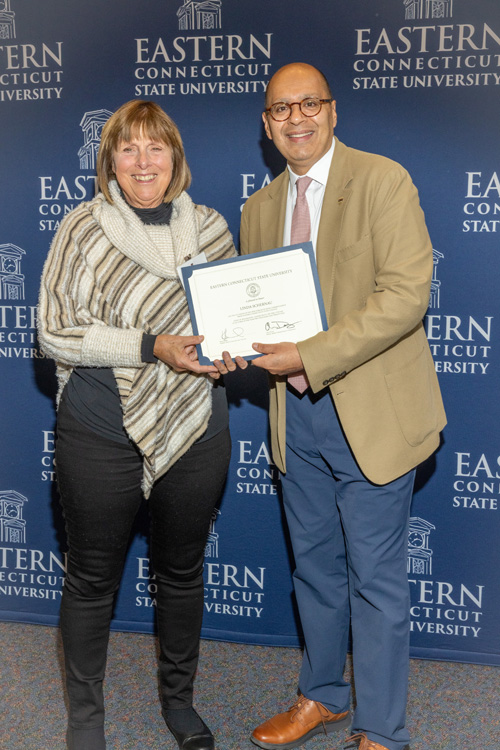Following graduation, Christiana worked as a teacher for a few years before moving to Aetna and then to the Senate Office at the State Capitol. She returned to Eastern in the 1990s for a master’s degree in organizational management.