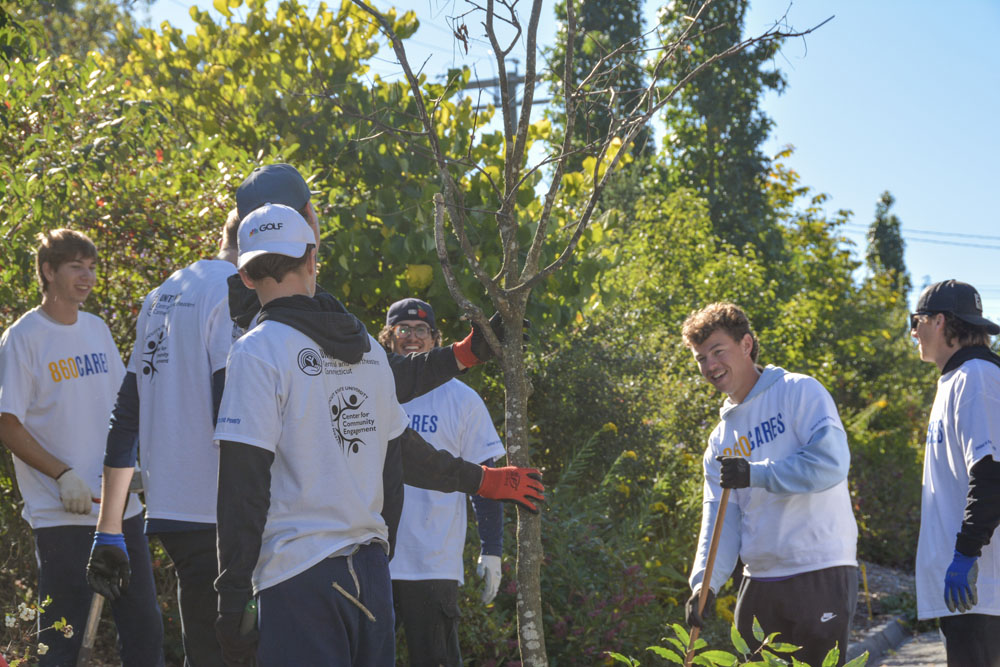The CCE brought student volunteers to Abundant Life Community Church, Whitewater Park, the Connecticut Eastern Railroad Museum, Main Street’s Garden on the Bridge, the garden on High Street, among other sites. Various organizations were represented among the student volunteers, including the men’s baseball and lacrosse teams, and CCE student volunteers.