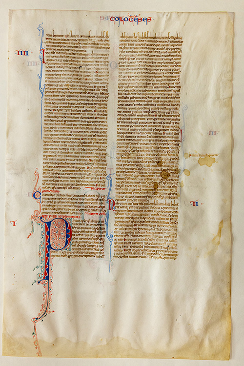 After receiving a donation of the Bible leaflet from Student Development Specialist Michael Smith, art history Professor Maeve Doyle verified the artifact as part of a Biblical manuscript.
