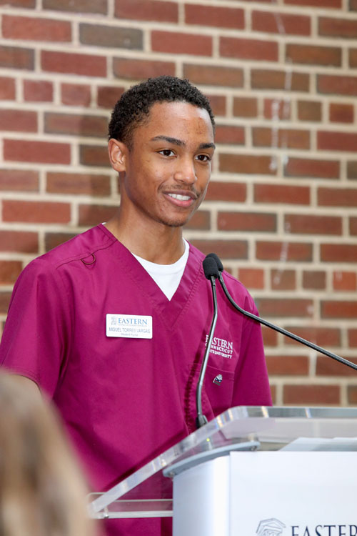 "I am extremely impressed with the amount of advanced equipment available in the new simulation lab," said nursing student Miguel Torres. "While I knew the lab was coming, I didn't expect anything of this scale. It is amazing to have this resource as part of our nursing education at Eastern, as it provides a true hospital-like experience that will prepare us for the real world."