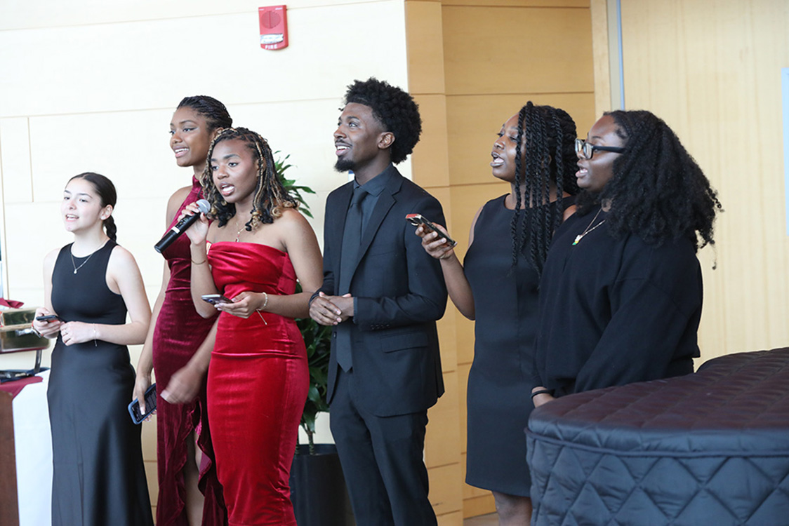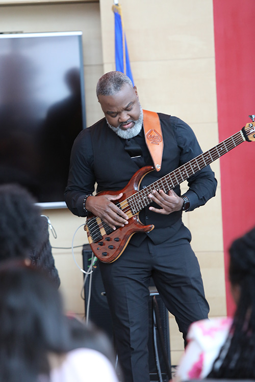 The ceremony was decorated with musical performances, including a rendition of Michael Jackson's "Man in the Mirror" by Eastern's United Voices of Praise and concluding with a live performance by jazz guitarist Asa "Ace" Livingston.