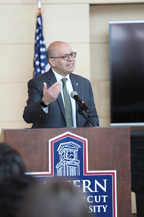Eastern Connecticut State University's annual Equity and Social Justice Awards recognized three student activists for their commitment to civil rights and advocacy for marginalized groups. The ceremony took place on Feb. 20 in the Fine Arts Instructional Center's Susan Sukman McCray Foyer.