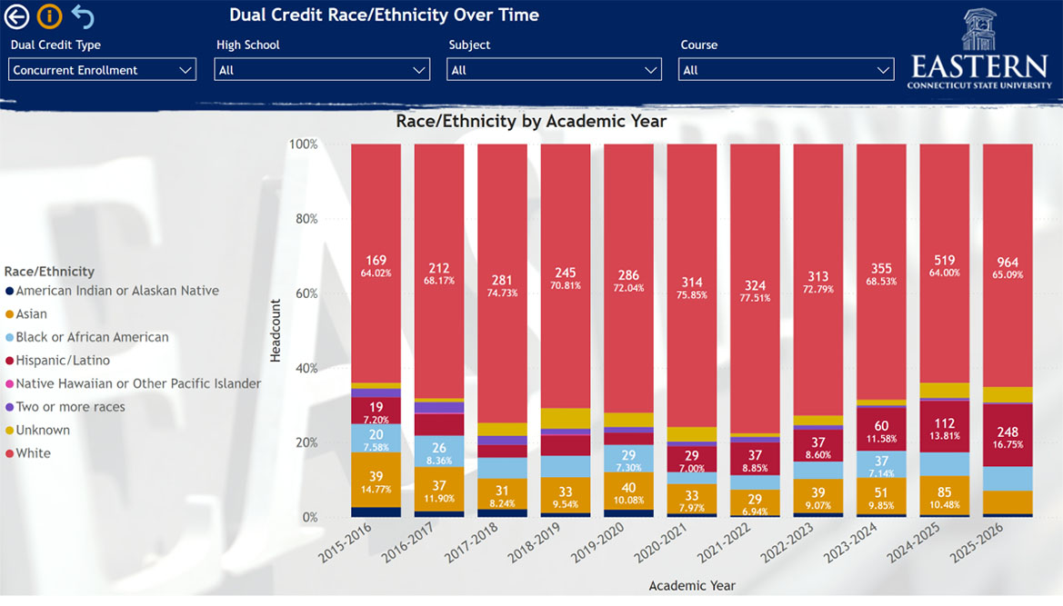 Both Eastern and its high school partners have benefited from state of Connecticut funding support. In 2023, Governor Lamont announced a Dual Credit Expansion Grant to grow high school dual credit programs, with $3.8 million in funds. The following year, grant funds were offered to institutions of higher education as well. Eastern is in year two of a three-year $178,000 grant to support its concurrent enrollment efforts. The state grant addresses both access and quality by requiring Eastern to waive tuition for low-income families and commit to going through accreditation. The National Alliance of Concurrent Enrollment Programs (NACEP) is the accrediting agency; Eastern hopes to hear from them on its accreditation application in June 2026.