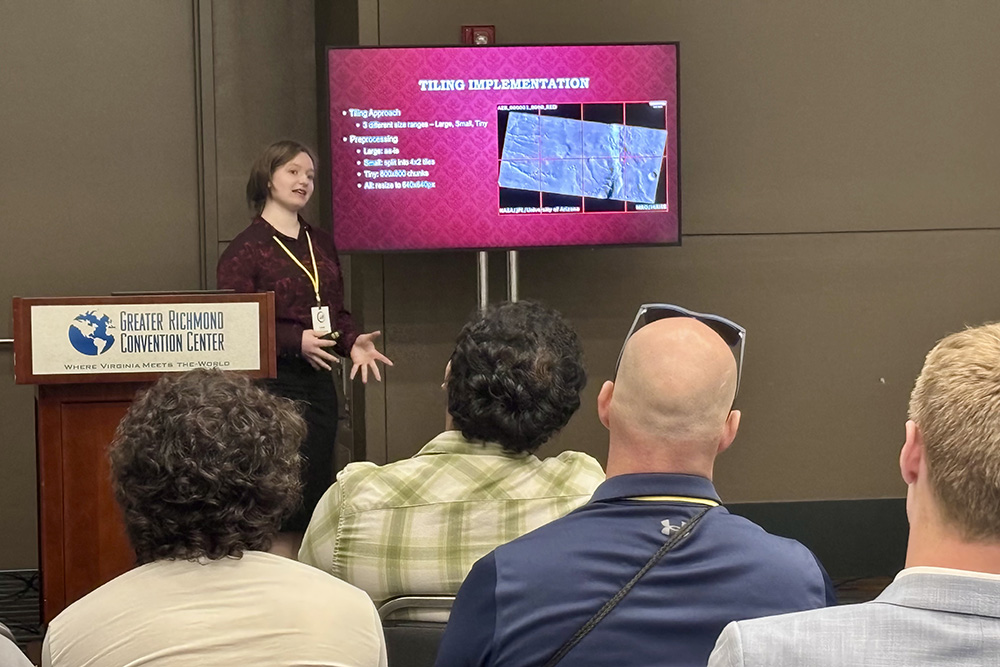 Senior computer science major Quinn Sawyer attended NCUR as her first-ever conference, describing it as a great first opportunity to present her research on AI-driven analysis to a larger audience.